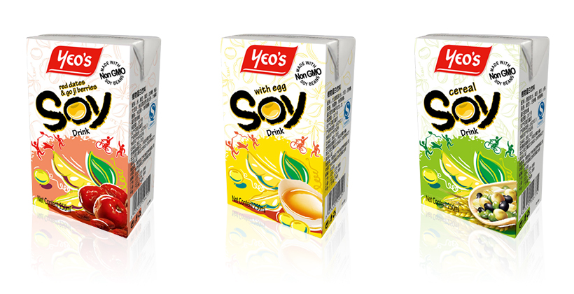 我们采用简单的大豆图片为豆奶设计了一种专门图标,从而体现了该公司的全豆研磨技术,并用画笔写出产品名称以突出动态感和年轻感。我们还精心选择了很容易突出货架上杨协成产品的一套色彩来体现健康的户外生活方式。